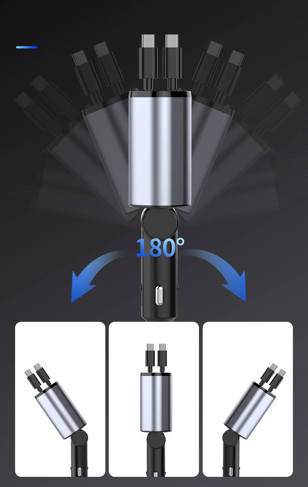 Fast Charger Car Phone Station Charger 4 in 1 LED Digital Display Retractable 2 Cables Type C Portable Car Charger for IPhone 16